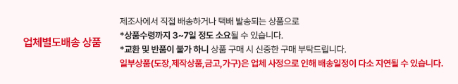 - 제조사에서 직접 배송하는 상품으로 2~5일 소요예정(업체에서 별도택배발송)