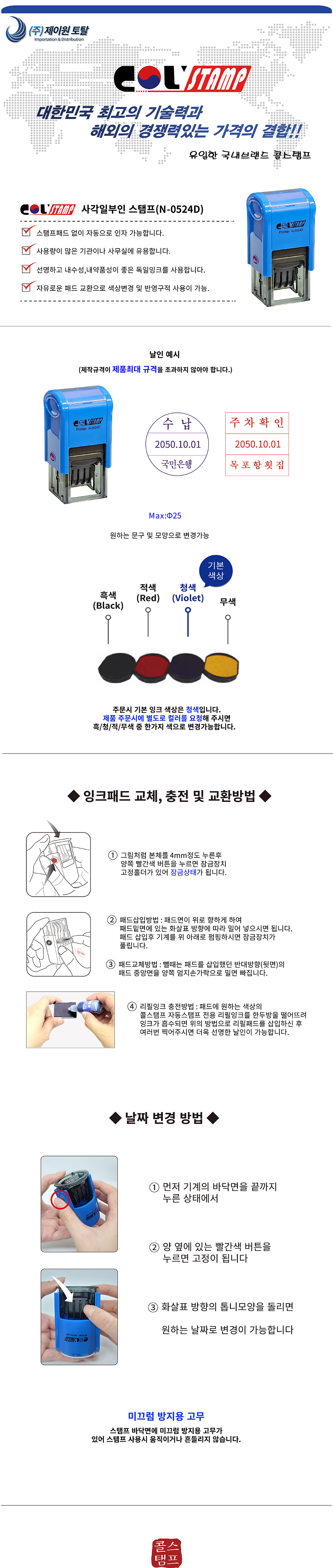 ■ 품명및모델명 - 정사각일부인 (C-0524D)■ 법에의한 인증 - 해당없음■ 제조국or 원산지 - 중국+대한민국■ 수입여부 - 제이원상사■ 연락처 - 오피스디포 - 1899-6800■ 안전인증여부 - 해당없음